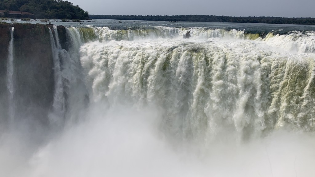 Unlike the Brazilian side where you walk along the side of the river and end at the Devil’s Throat, on the Argentine side, you walk out to the falls across a boardwalk over the river to get to the falls at Devil’s Throat.