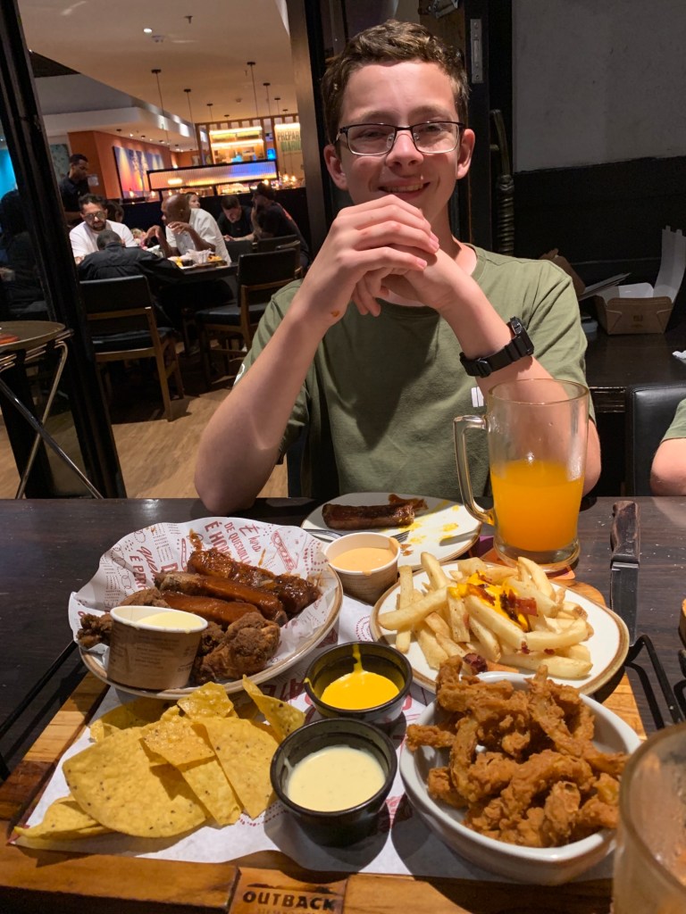We passed by an Outback and stopped for their weekend rodízio, which consist of endless drinks and appetizers of ribs, wings, nachos, blooming onion petals, and cheese fries.