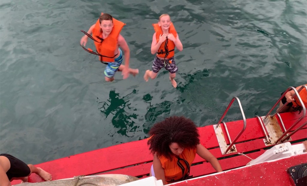 Once we got a ways out, they stopped the boat for the passengers to take a swim. The area where they jumped was full of jellyfish eggs. It didn’t hurt but it was kind of weird having these little things constantly touching you while in the water, or so I was told by the boys. You all know, I didn’t jump in that water.