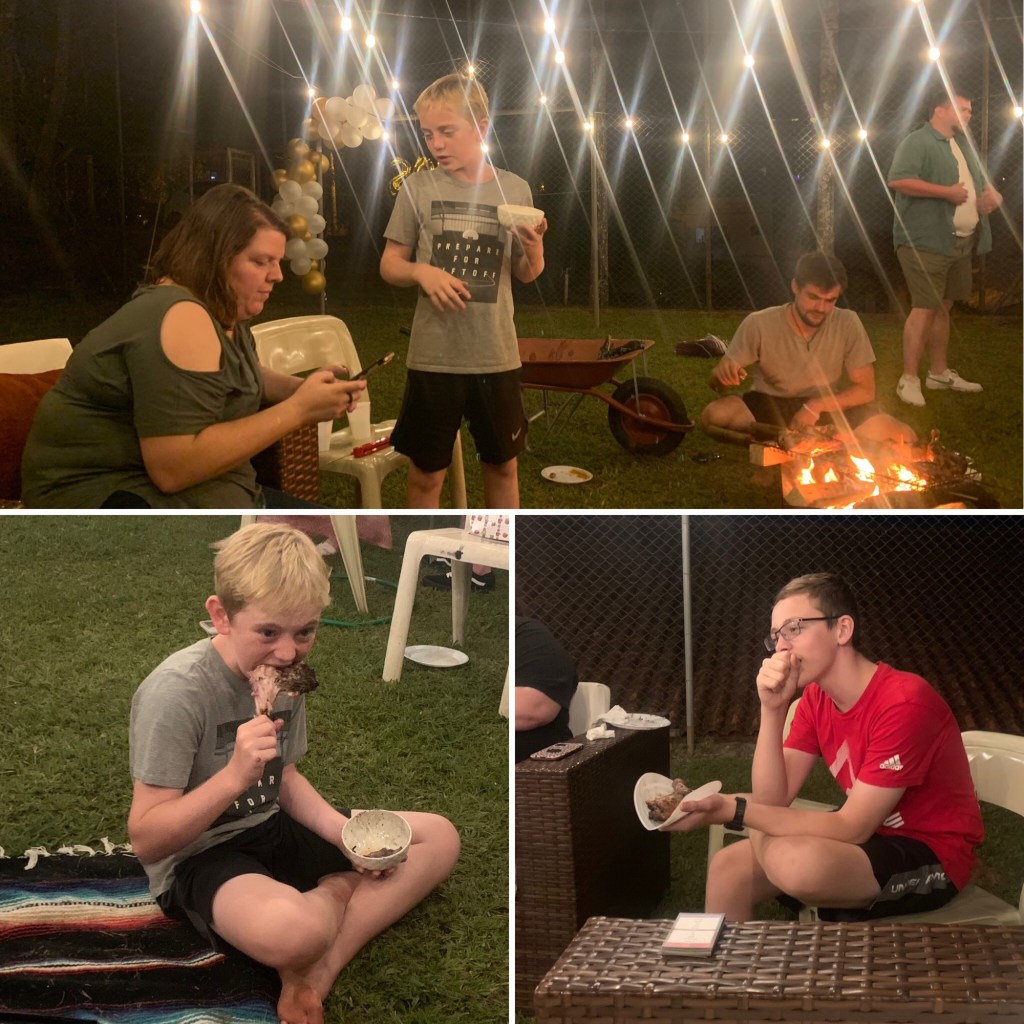 Later we shared our highs and lows and how God has blessed us this year. Then we played games and Tucker went all caveman on us after Keith Micheal grilled up some chicken; Mason found it funny. Then it was time for the outdoor movie and popcorn. Fireworks went off intermittently during the evening. At midnight the community shot off fireworks and a neighbor outside the community put on an even bigger show that lasted about 30 minutes. Music was still blaring at 4am. You know how I said Christmas is pretty chill, well, New Year’s is the opposite. People party all night long and nothing is open on New Year’s Day. Trevor and I never try to stay up so we went home early and the boys stayed and Sarah brought them home close to 1am. They felt like big shots, all the other kids had long gone home.