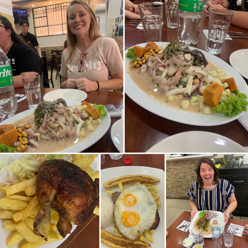Next item of business was food. Everyone was hungry. We found a Chilean or Peruvian restaurant (not sure which as lots of the restaurants are Peruvian) called El Super Gordo and walked. Trevor and Mason shared the ceviche mixto (fish, squid, shrimp), Tuck and I shared the baked chicken, Emily had the beef chorrilho, and Sarah order some beef dish, I don’t remember the exact dish. The food was good and our waiter spoke some English.