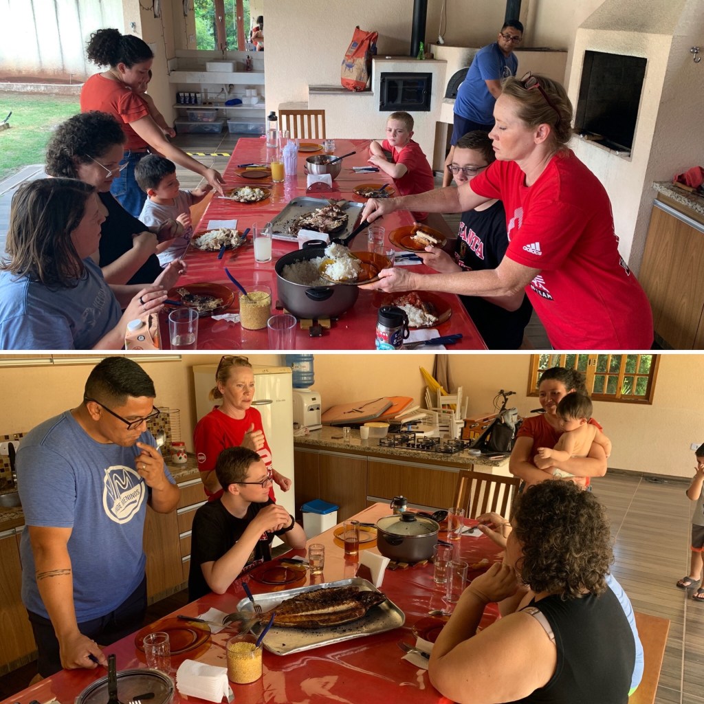It was actually really good. Tuck even ate it. It is common in the Amazonia region to eat the head. Liandro says all the kids scramble to get to eat it first. I told him Americans don’t usually eat the head but I gave it a whirl. It wasn’t bad but it had a mushier texture than the rest of the fish that I didn’t love, but, hey, I tried it. Surprisingly Mason didn’t try it but I think that was because there wasn’t much to try. I made Brazilian vinaigrette (which is tomatoes, onions, cilantro, green onion, red wine vinegar, and olive oil), Ellis made rice, Sarah brought drinks, and Chris brought over some farinha de mandioca (which is like hard ground up cassava bits- that’s the yellow stuff in the jar by the fish) and she made a frozen dessert made of cupuaçu (a fruit found in the Amazon) and chocolate. Chris and Liandro said this would be a typical Sunday lunch where they’re from.