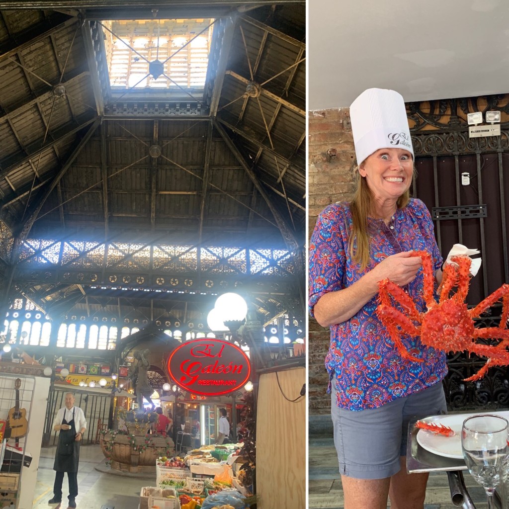 When I saw these crabs in the case, I knew it was time for lunch. El Galeón was a treat. Crab legs are my favorite. You pick the size of the crab you want depending on the number of people eating it. Each person gets a pisco sour, we opted for the kids mashed melon instead, a strawberry juice, fries, peas and carrots, rice, and white bread with a warn red sauce. A staff member comes to your table and cracks the crab for you. It felt so fancy.