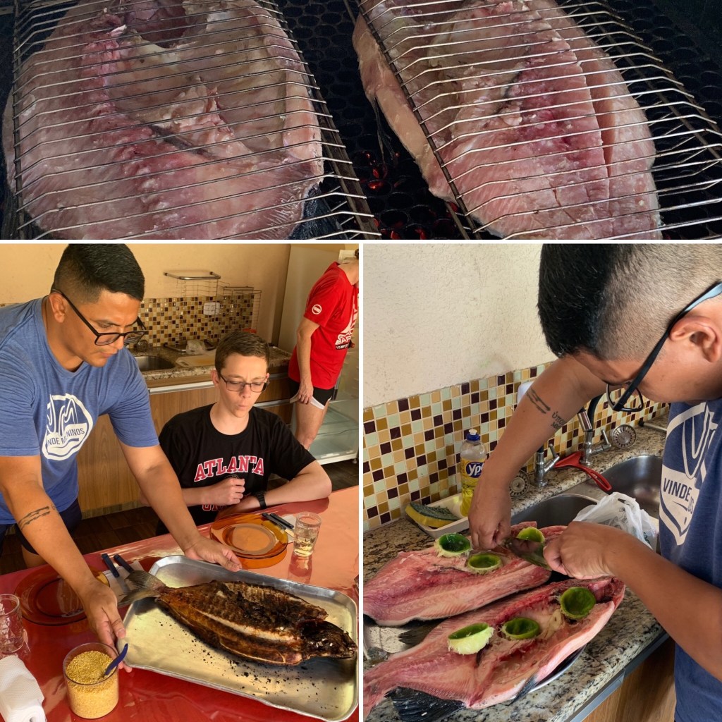 This particular river fish, is called Tambaqui. It is about R$100 in the Amazon but here it costs over R$300 so it’s not something we eat here. Look at Mason’s face. He is like, “Whoa!”