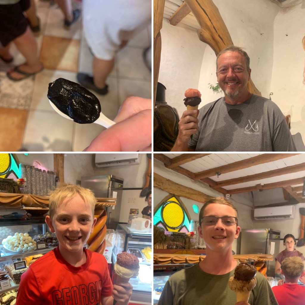 The boys had churros, and ice cream, and I tried a small sample of charcoal activated lime, whatever that means. I grabbed a cookie and a chocolate mixed nut treat to eat later when I was feeling better.