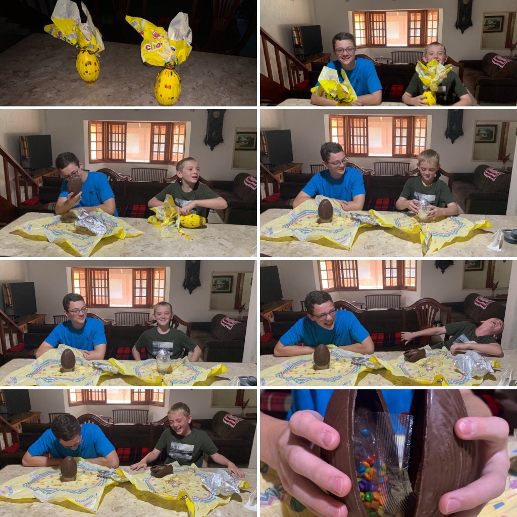 We celebrated Easter at home. This is the first Easter in Brazil we have spent together because last Easter the boys were at English Camp. I was happy to spend it together this year even if it was pretty low key. We streamed service from back home and the boys each received chocolate eggs. Brazilians don’t really do Easter baskets, but these chocolate eggs are super popular.