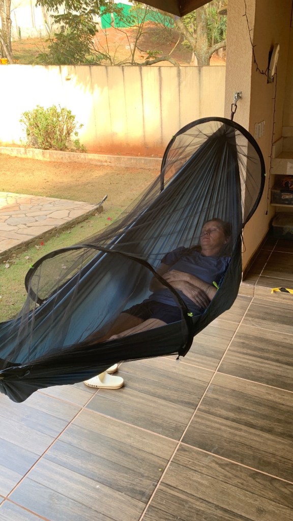 Why is the women, with hip issues and that gets motion sick, testing out sleeping in her new hammock with a mosquito net you might ask? Well, that’s because I am headed to Marajó Island in northern Brazil in the Amazonian region of Pará. We, a group of 11 Portuguese only speaking people (except for me) are going to a remote village to spread the gospel. Apparently, it is an over 3 1/2 hour plane ride and a 12 hour overnight boat ride, sleeping in hammocks on the boat to reach this river village. There will be another night when we are at another village where we will, also, sleep in our hammocks. The other time we will be staying in a house with one bathroom. Apparently, bathing takes place in the Amazon River as we have been instructed to wear dark clothes for that. Hopefully, if I’m not eaten by piranha, crushed by an anaconda, bitten by a spider the size of my hand, or dead from yellow fever, I will tell you all about it in the next post. Prayers are greatly appreciated.