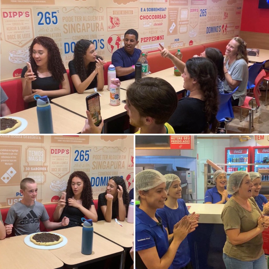 Pizza was a great time. We went to Dominos (it’s a lot more expensive than our normal Brazilian pizza place so we save it for special occasions). The staff were so great. When they heard us signing happy birthday, they made him a dessert pizza (we didn’t order it) and brought it out to him and sang to him. I thought that was so sweet. Brazilian are so social.